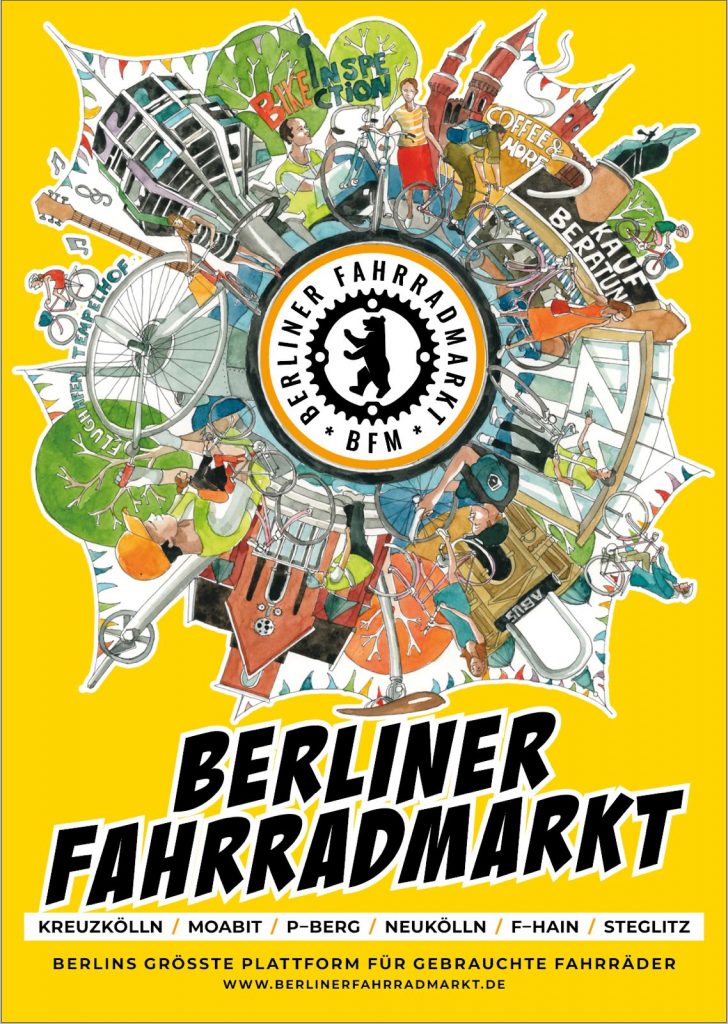 Beim Berliner Fahrradmarkt in Kreuzkölln, Moabit, Prenzlauer Berg und Neukölln findest Du eine große Auswahl an Fahrrädern aller Art. Plus Rahmenprogramm sowie Street-Food, Upcycling Kunst und Infostände zu Berliner Initiativen & Organisationen. Fahrrad-Käufer und Interessierte sind herzlich eingeladen!